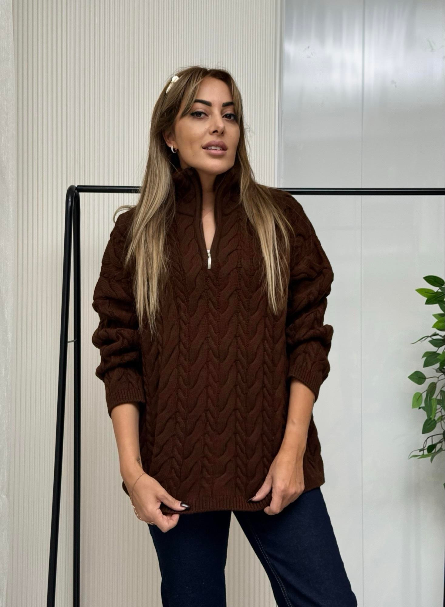 MODAYBUTİKPremium Acı Kahve Fermuarlı Örgü Triko