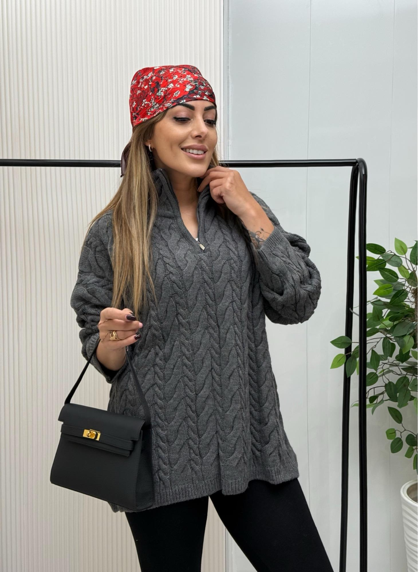 MODAYBUTİKPremium Gri Fermuarlı Örgü Triko