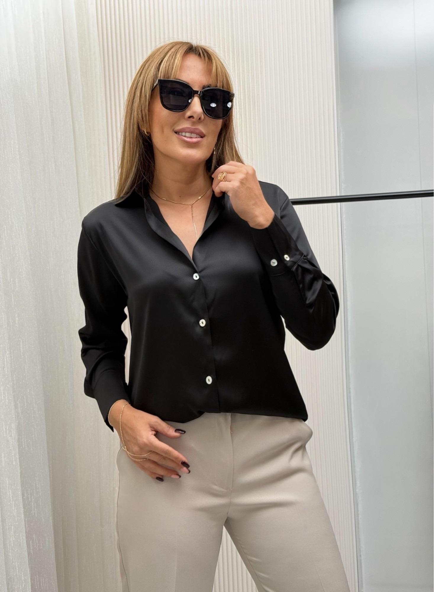 MODAYBUTİKSoft Glow Siyah Saten Gömlek